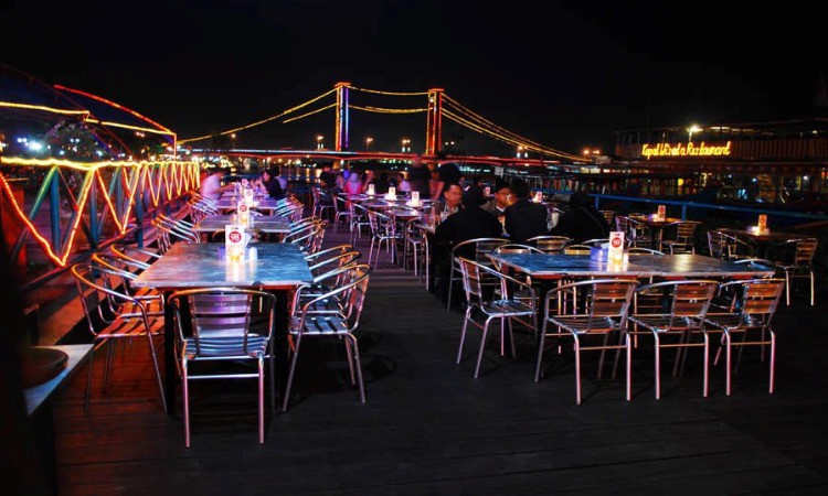Dengan pemandangan Jembatan Ampera dan Sungai Musi, restoran ini menyajikan ragam masakan seafood. Lokasinya yang strategis membuat restoran ini mudah dijangkau. Area yang luas dan juga adanya live music semakin membuat asyik waktu makan Anda.