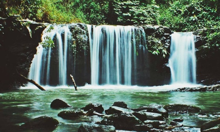 Anda dapat mengambil foto dengan latar belakang air terjun yang indah demikian. lokasi wisata ini juga dikelilingi pemandangan yang indah sehingga nuansa segar akan tersaji meski mengunjungi saat terik matahari bersinar.