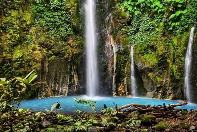 Di kota Medan ternyata terdapat wisata alam berupa air terjun yang tak kalah menariknya dengan tempat wisata lainnya. Air terjun ini sering kali menjadi perhatian banyak wisatawan karena memiliki dua warna di dalamnya yaitu biru dan hijau atau putih keabu-abuan. Setiap warna air terjun tersebut memiliki hawa yang berbeda – beda, air terjun biru dengan hawa yang dingin sedangkan air terjun hijau dengan hawa hangat. Perlu diketahui bahwa perbedaan warna yang dihasilkan tersebut adalah karena kandungan belerang dan fosfor di dalamnya. Menariknya lagi, air terjun dua warna ini dikelilingi oleh beberapa batuan yang semakin menambah kesan eksotis.
