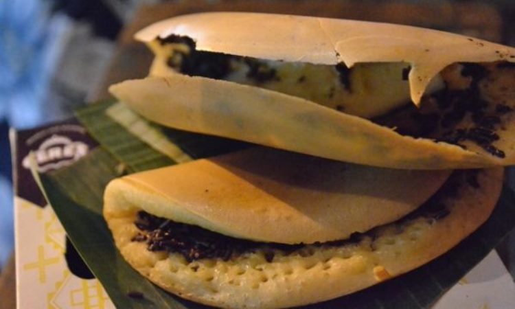 Jajanan ini biasanya akan disajikan menggunakan piring di atas tungku arang. Untuk topping martabaknya, Anda bisa memilih sendiri. Anda bisa memberi topping keju, coklat, atau meses. Selain penyajiannya yang unik, bungkus martabak ini juga sederhana, yaitu menggunakan daun pisang. Untuk harga dan rasanya, tentu tak perlu ditanyakan.